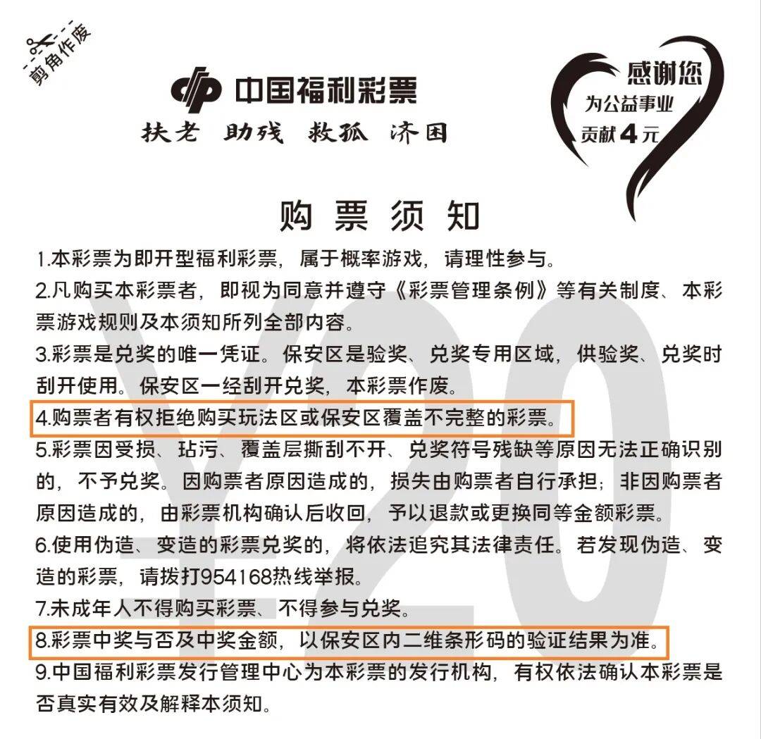 ✅彩票是兑奖的唯一凭证,保安区是验奖、兑奖专用区域,共验奖、兑奖时刮开使用。保安区一经刮开兑奖,该彩票作废。