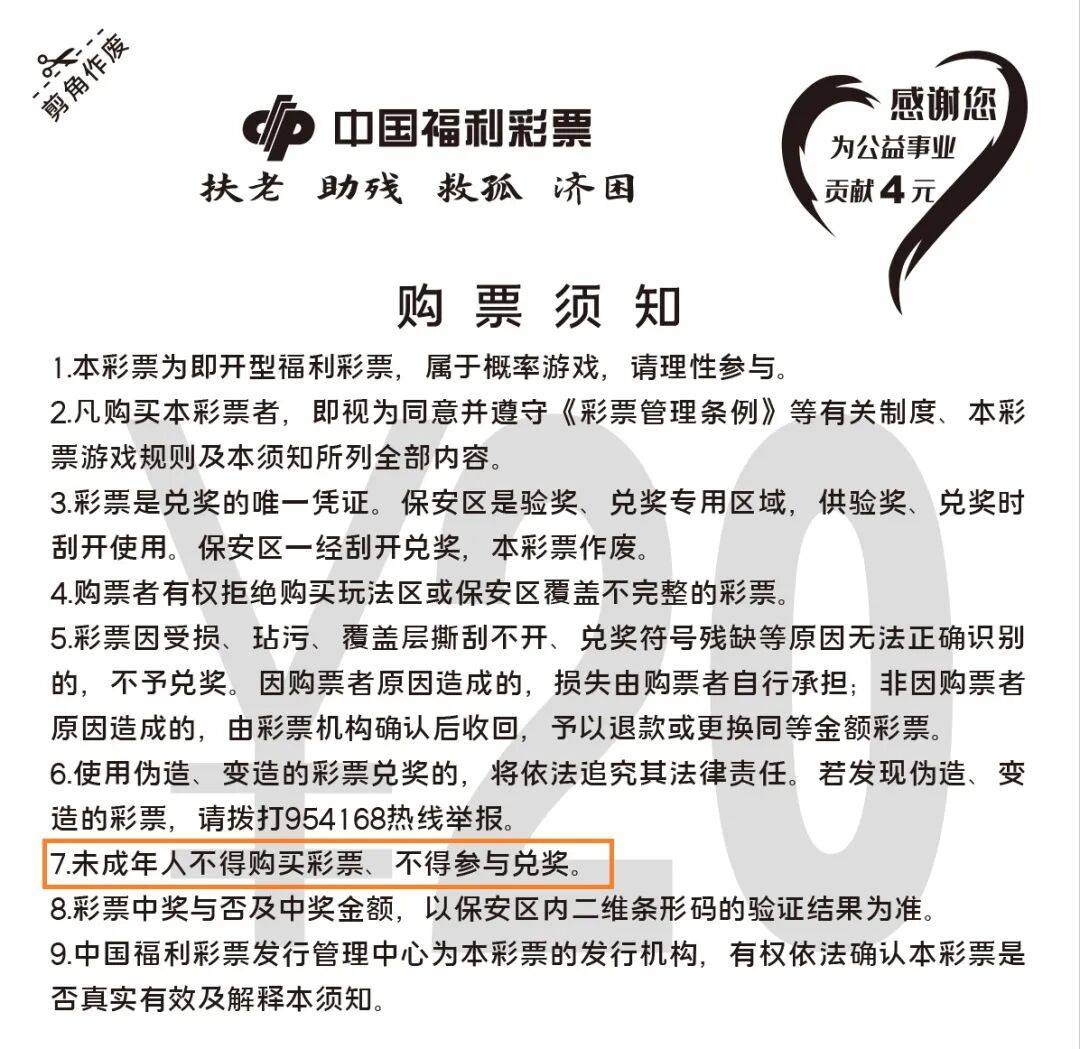 《彩票管理条例》明确规定,“不得向未成年人销售彩票”和“不得向未成年人兑奖”。